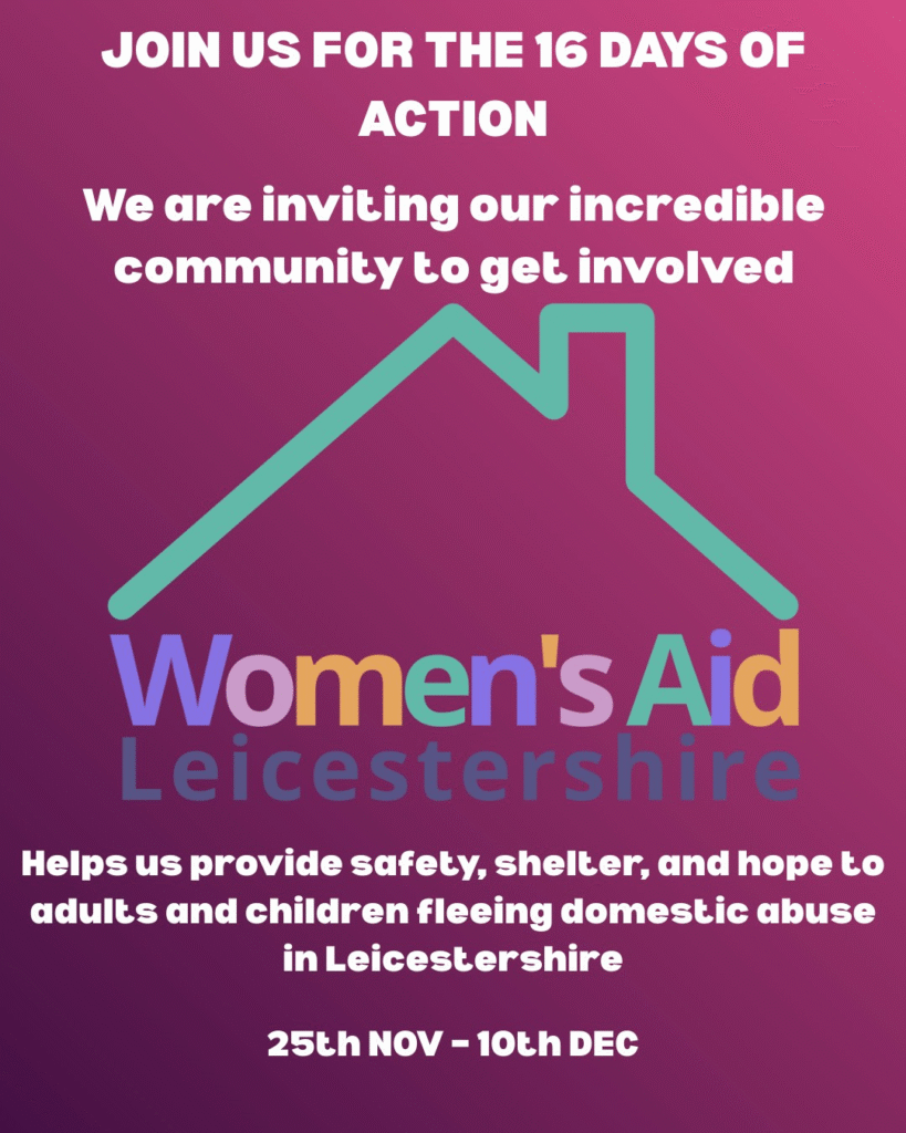 #16DaysOfAction #WomensAid #Leicestershire #EndViolence #SupportSurvivors #DomesticAbuseAwareness #Fundraiser #DonationDrive #CommunitySupport #TogetherWeCan